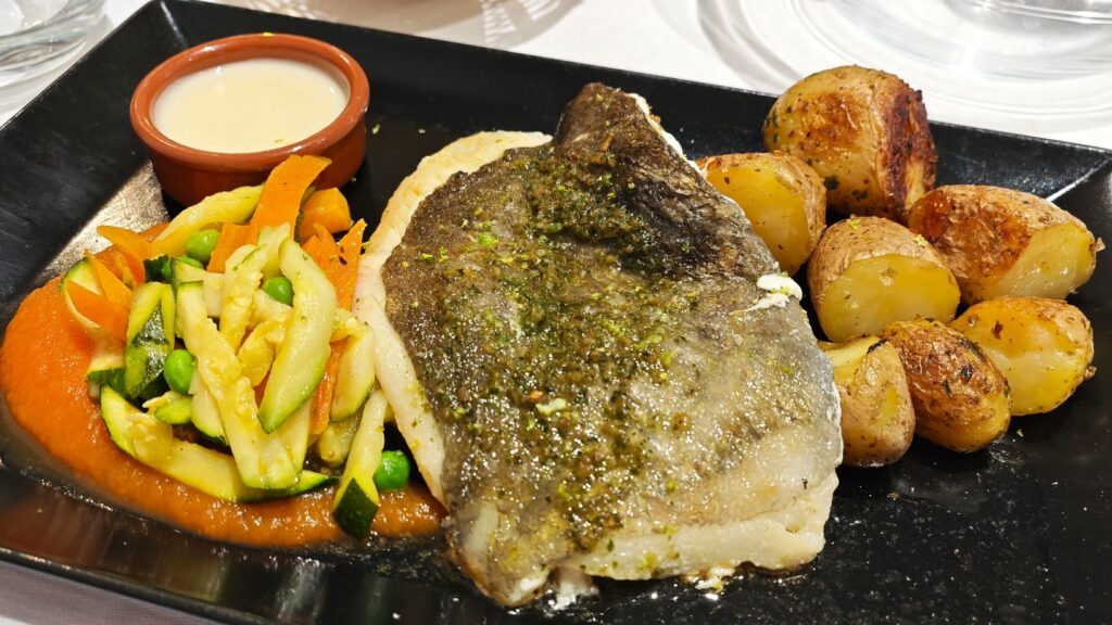 The Saint-Pierre fillet, a praised local fish, was exquisitely cooked—tender, flaky, and almost meltingly smooth. It’s paired with alight-yellow beurre blanc sauce—a classic French emulsion of butter, white wine, and shallots that was rich yet delicate. It was topped with chopped chervil, an herb similar to parsley but with a subtle anise note.