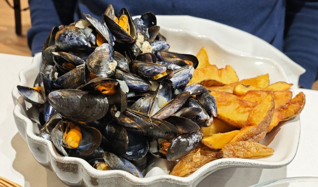 The mussels arrived steaming in a big pot, smelling of the sea and white wine. Cooked in the classic marinière style—with white wine, onions, parsley, and garlic—they were plump, tender, and tasted as fresh as the ocean breeze. The broth was light, fragrant, and perfect for dipping the last piece of bread.