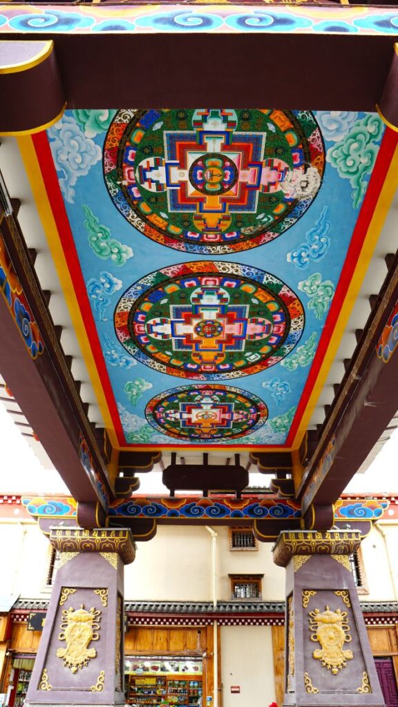 Unser Tipp: Geht direkt in den zweiten Stock und wählt einen Fensterplatz. Der Blick auf das große Gebetsrad, das von goldenen Dächern überragt wird und im Sonnenlicht erstrahlt, ist wirklich beeindruckend (🎬 50 s).