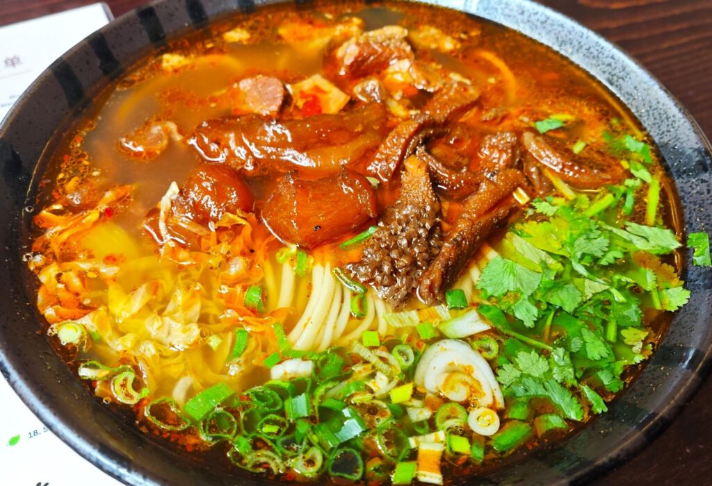 It’s served with fresh cilantro, green onions, and the traditional crunch of white radish and pak choi. One tip: the dreamy broth is bottomless! Feel free to ask for a free refill if you like!
