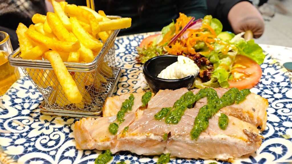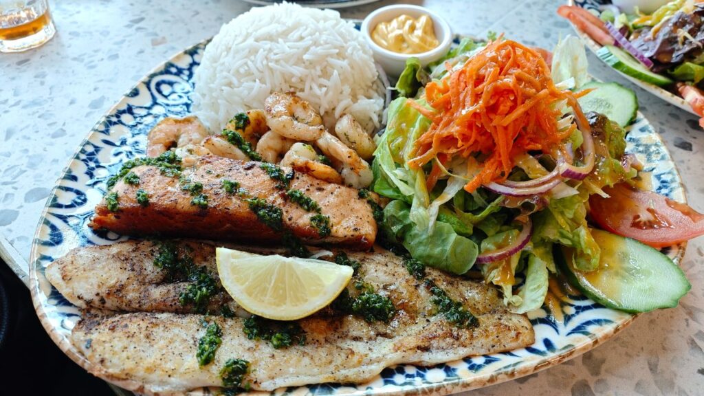If salmon is your favorite from the mixed grill, you can order it separately. This dish includes two magnificent fillets; each grilled to perfect succulence. The skin is crisp, sealing in the incredible juiciness of the flesh. Cut into it, and you’ll find that gorgeous, fatty layer just under the skin, which melts in your mouth, releasing a rich, oceanic flavor.