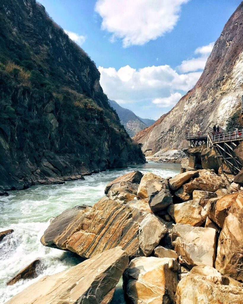 Tiger Leaping Gorge is named for the legend of a tiger 🐅 leaping across the river using a massive rock. This is the deepest river canyon in the world, carved between the Jade Dragon Snow Mountain (5,596m) and Haba Snow Mountain (5,396m).