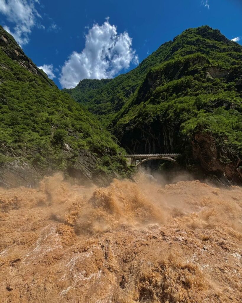 🌊🐅The Roaring Heart: Witness the 180° rush of the Jinsha River slamming into rocks, creating mist and rainbows (Upper Tiger Leap).