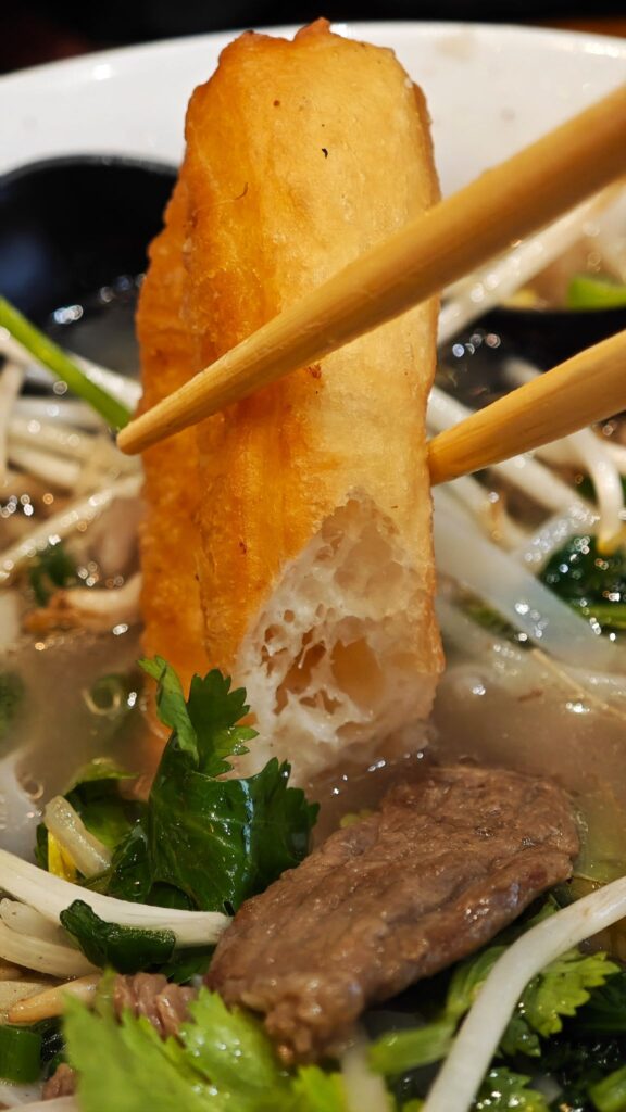 Plus, there’re crispy quay (fried dough stick), a great pho companion. Dip it in, let it soak up the beefy essence, then bite into its crisp-then-soupy flavor bomb.
